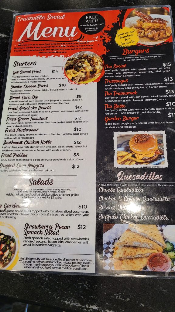 With a focus on both classic American favorites and globally-inspired dishes, there’s something for everyone to savor. Each item on the menu is carefully crafted to provide a memorable dining experience. From mouthwatering sandwiches to hearty steaks cooked to perfection, the menu offers a plethora of options to satisfy cravings. Patrons can expect the menu to reflect the best of each season. This commitment to variety ensures that every visit to Trussville Social is a unique and delightful experience.